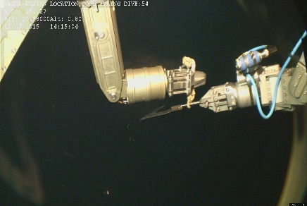 2015年7月,7功能主从伺服液压机械手搭载“发现”号ROV,在1100米冷泉区完成了9次下潜,执行了样品采集、样品回收及采样器触发等操作,圆满地完成了科学考察任务,这是该机械手首次开展科学考察作业应用。