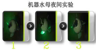 机器水母内部安装有LED灯,使操作者在夜间也能够很方便的发现机器水母的所在位置。其夜间工作模式如图8所示