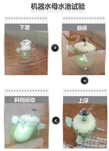 机器水母的主要工作任务是对定点或小范围区域进行实时观测,尤其适用于深海环境,因为深海处水流相对较小,机器水母可长时间悬停在某一定点。图6展示了机器水母上浮、下潜、悬停、斜向运动的功能。