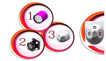 该型是第一代机器水母,主要进行观测用。其下半部分装有4个防水摄像机是为了保证水下机器人可以随时观测其周围状况,最下端的抛载装置可以在遇险时使机器水母完成上浮。摄像机和抛载装置三维示意图如图7所示。
