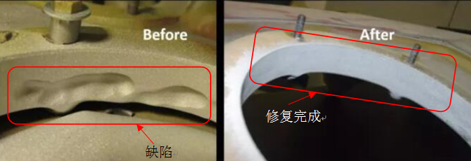 在零件修复方面,在传统加工技术里,工件上的材料如同我们的青春一样,一去不返,所以传统加工宁可多留一分,也不少留一点。所以在实际生产中,一旦零件磨损了,就难以修复,只能换一个,但不是所有零件都能换,或因成本太高,或因零件绝版等原因,无法更换,我就可以把他们缺的那个部分给补回来,如图6那样,甚至修补部分比原本工件的强度更高,更加耐用。