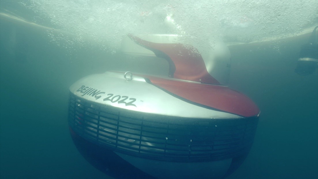 2022年2月2日,在北京冬奥公园,奥运史上首次由两名机器人“火炬手”完成水下传递,其中一台机器人就是水陆两栖机器人。