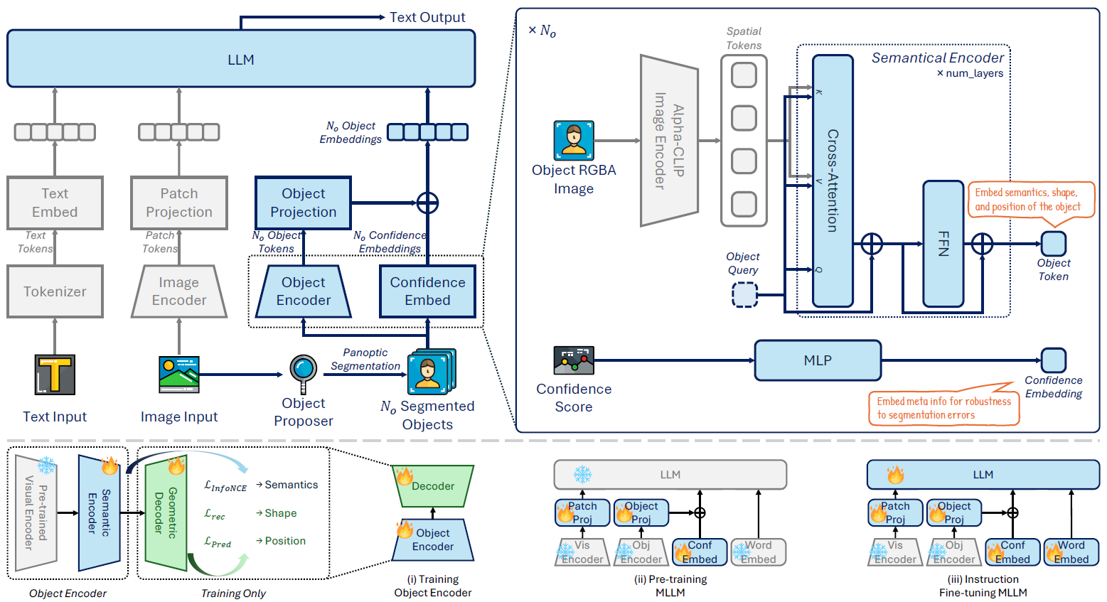 在多模态大模型方面,研究团队提出了创新的物体分词框架ObjecTok,显著提升了模型以物体为中心的感知与推理能力。相关成果论文为ObjecTok: Learning Holistic and Robust Object Tokens for MLLMs,第一作者为博士生王思翰,通讯作者为刘西瑶副研究员。