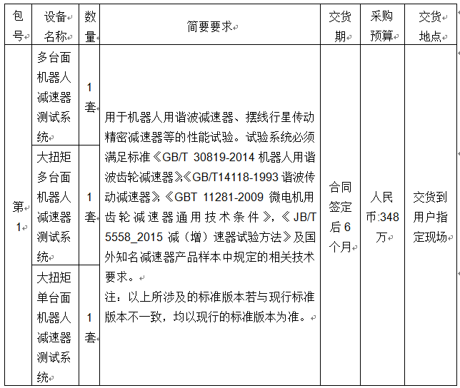 中国科学院沈阳自动化研究所机器人减速器测试系统采购项目招标公告