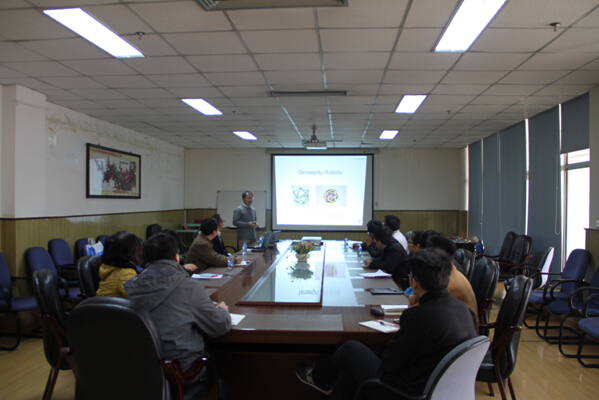访问期间,平井慎一为沈阳自动化所职工和研究生作了题为《张拉整体结构机器人的研究(Researches on tensegrity robots)》的学术报告。平井慎一在报告中详细介绍了日本立命馆大学在张拉整体结构机器人方面的研究工作。报告结束后,他一一回答了与会人员提出的问题。报告会受到了与会人员的热烈欢迎。