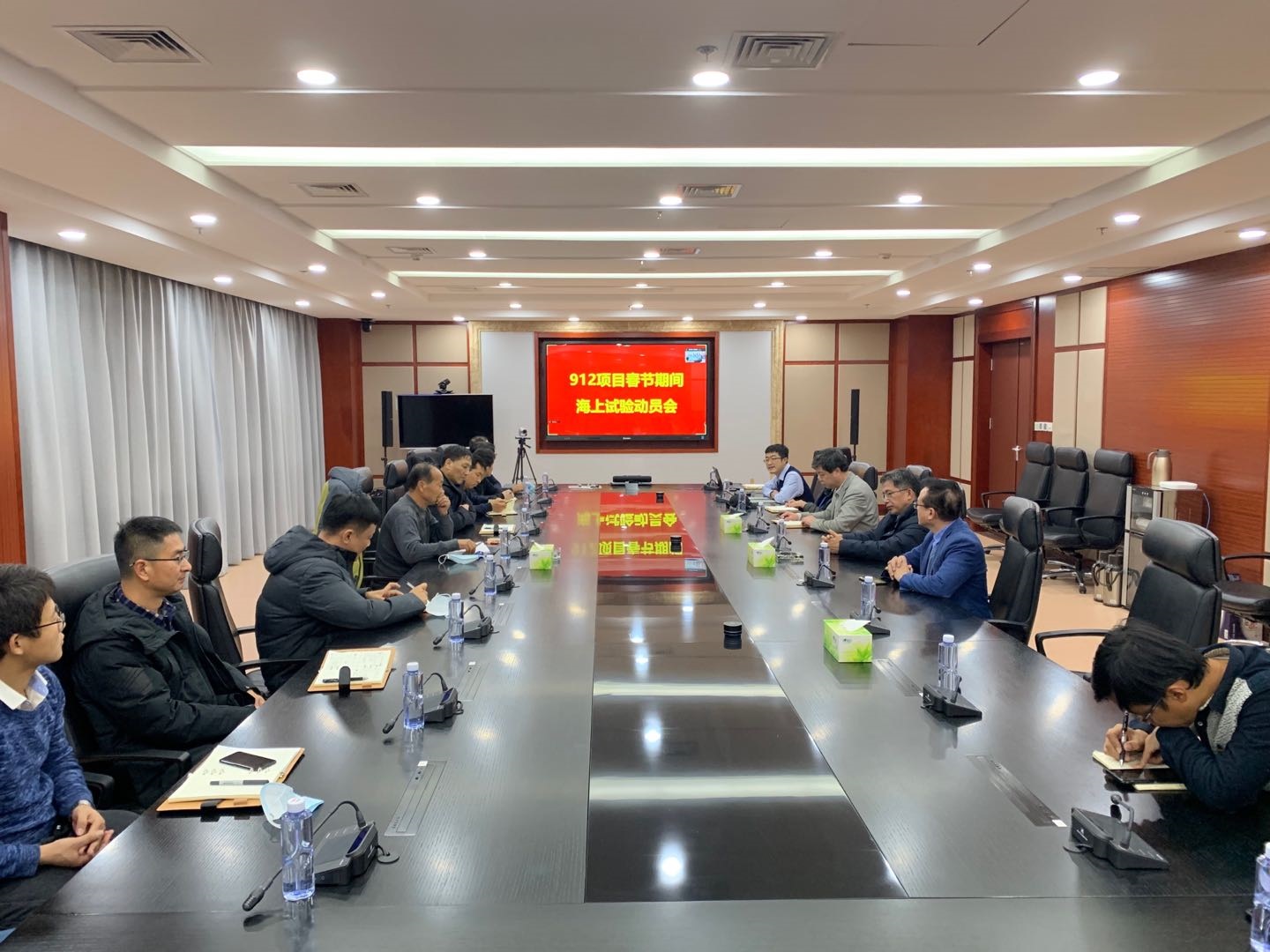 1月27日下午,中科院沈阳自动化研究所在创新路所区连线912项目试验现场,举行了912项目春节期间海上试验动员会。所长史泽林、党委书记桑子刚,工程项目处处长王晓辉、副处长王铮及912项目组全体成员参加了会议。